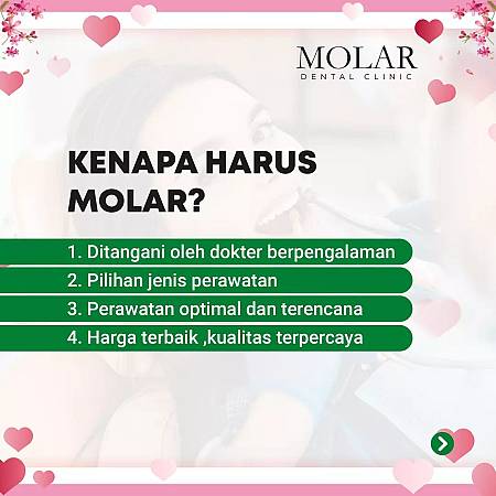 Segera konsultasikan masalah gigi kamu di Molar Dental Clinic PIK. Dokter gigi kami bepengalaman untuk membantu setiap keluhan kamu. Pastikan pilihan kamu hari ini bersama klinik gigi terbaik.