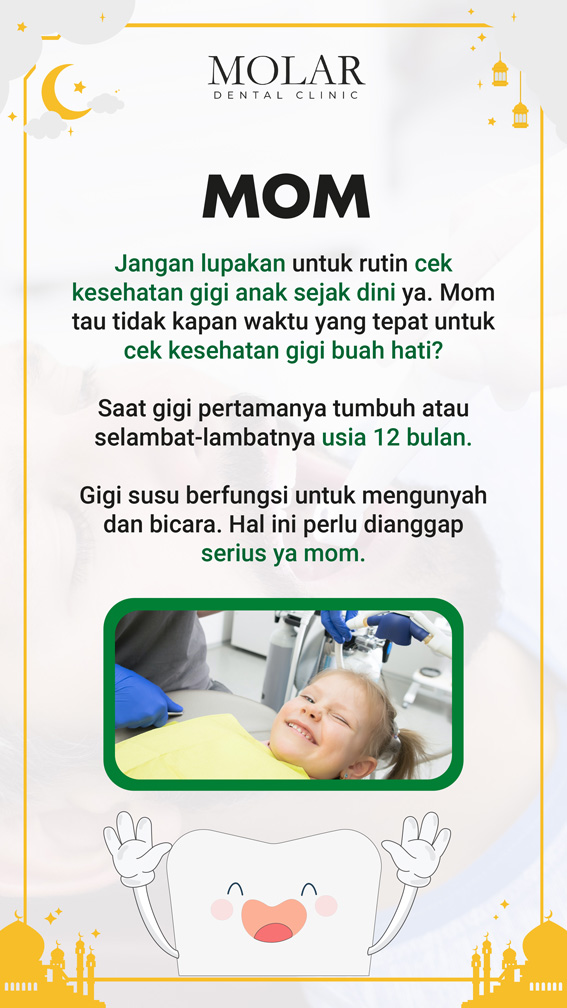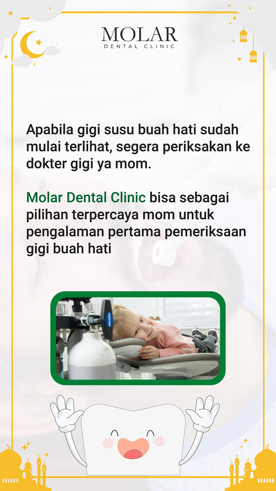 Molar Dental Clinic PIK sebagai klinik gigi utama PIK menawarkan layanan treatment perawatan gigi anak secara menyenangkan untuk buah hati tersayang. Pengalaman terbaik dari dokter gigi kami dalam menangani dan menyampaikan informasi kepada bunda. Pastikan pilihan kamu hari ini bersama klinik gigi terbaik.
