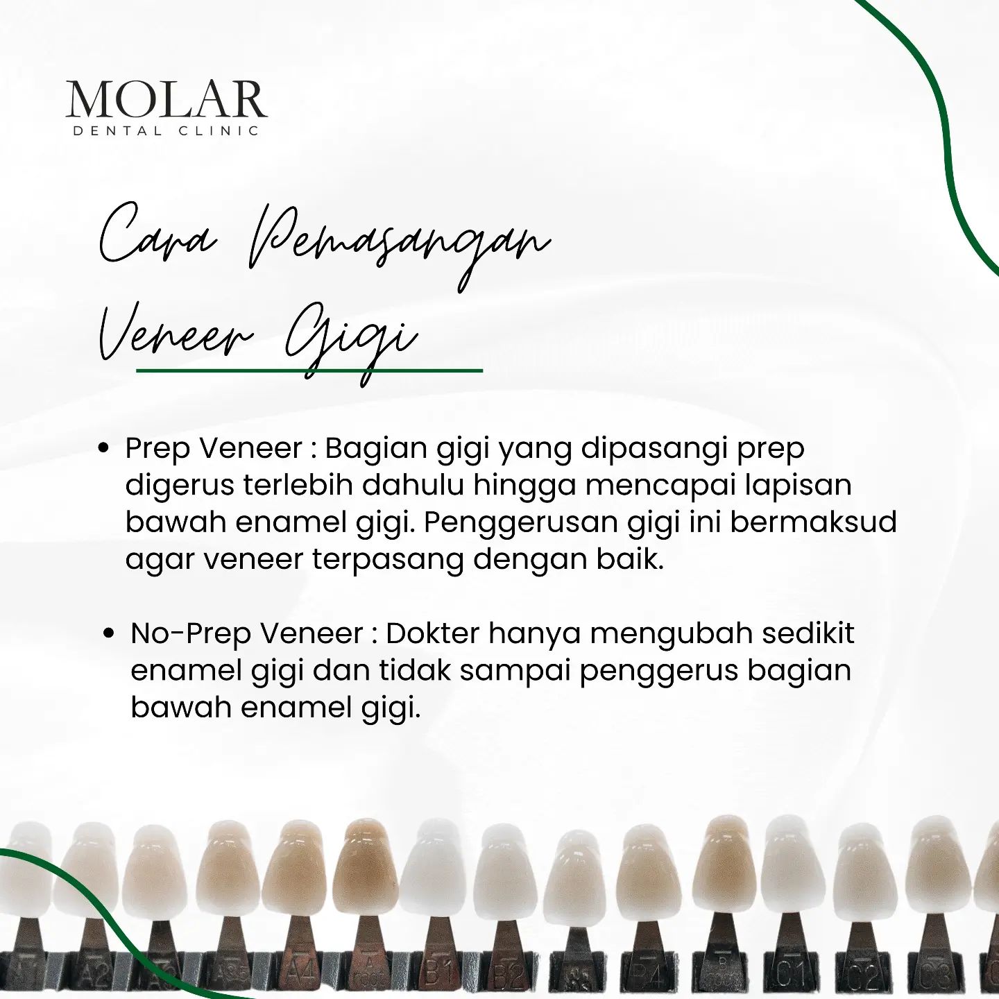 Molar Dental Clinic PIK sebagai klinik gigi utama PIK menawarkan layanan treatment veneer secara eksklusif untuk kamu yang memerlukan tampilan maksimal. Layanan oleh dokter gigi berpengalaman menjadikan konsultasi dan hasil terbaik dari treatment kamu. Pastikan pilihan kamu hari ini bersama klinik gigi terbaik.